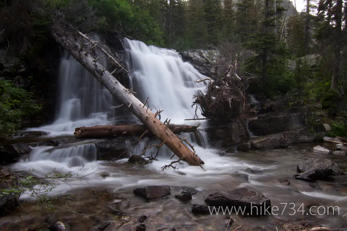 This hike will take you up North Fork Cut Bank Creek to a quaint little lake tucked up against towering cliffs. The trail starts with a wonderful flower meadow and follows North Fork Cut Bank Creek in the trees for 4 miles. Take the Pitamakan Pass Trail to the left at the junction with the Triple Divide Trail and 0.2 miles later, stop at Atlantic Falls.
