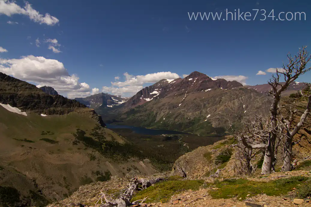 Scenic Point is an aptly named hike in the Two Medicine area. The hike starts out in some scrappy pines and follows Appistoki Creek up the drainage. You mercilessly gain elevation, but quickly access great views right after a bird’s eye view of Appistoki Falls. As you head up, you will enter a forest of old, twisted, gray trees.