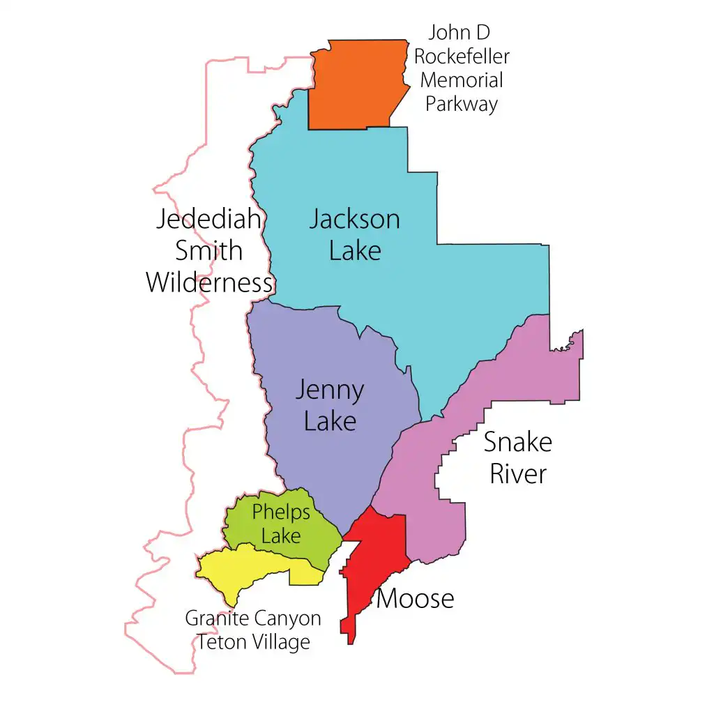 Regions of Grand Teton National Park: