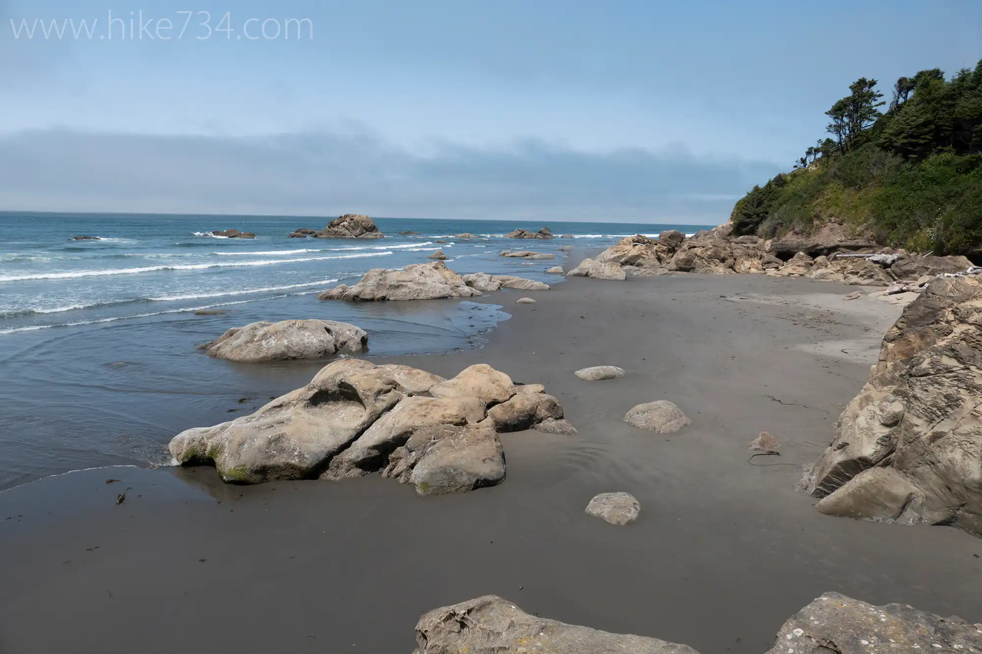 Trailhead: Turn into the Kalaloch Campground off Hwy 101 (34 miles south of Forks). Beach access is on the west end of the parking lot behind the campground registration kiosk.