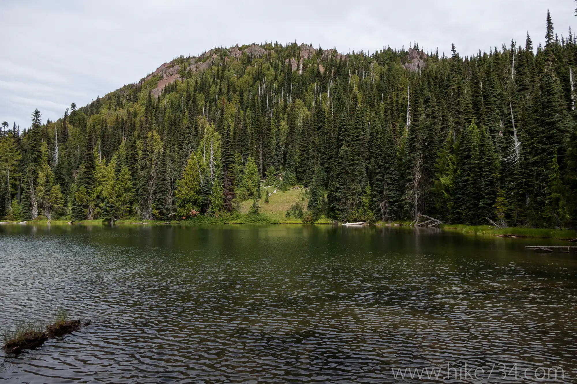 The quaint Happy Lake sits on the other side of a steep forested ridge that requires much effort to enjoy its shores. The trail immediately begins steeply switchbacking up Happy Ridge.