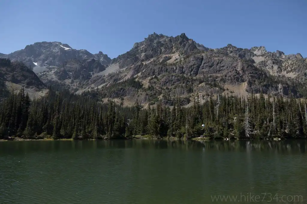 You’ve got quite a bit of forest walking to go, including some steeper switchbacks, but you eventually make it to the Lower Meadow campsites with sweeping views around you. Royal Lake sits just above this meadow. After a brief climb through the trees, you’ll pop out on the shores of the emerald lake. The east shore of the lake gives you great views of the tall, jagged, gray rocks of the Needles.