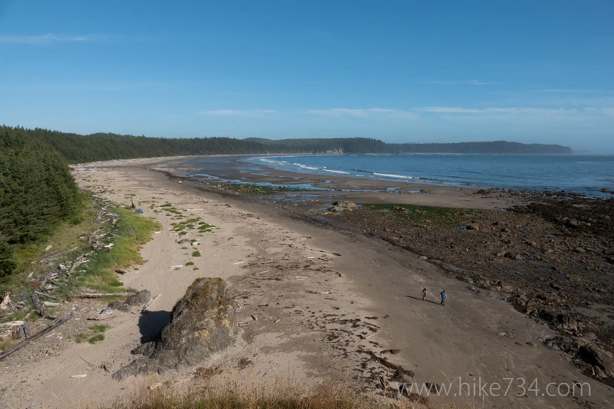 At low tide, explore the vast tide pools to the north. Sea stacks dot the ocean. If the tide is low, consider following the rocky shoreline up to Cape Alava, passing Wedding Rocks, then back on the Cape Alava Trail for the Ozette Triangle Loop (see Cape Alava and Wedding Rocks for description).