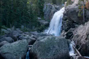 The pine and fir forest gives way to beautiful stands of aspens among boulders as you traverse to Glacier Creek. Follow this lively creek as it cascades over rocks and through canyons. Alberta Falls comes into view where the creek slides through rocks, then drops.