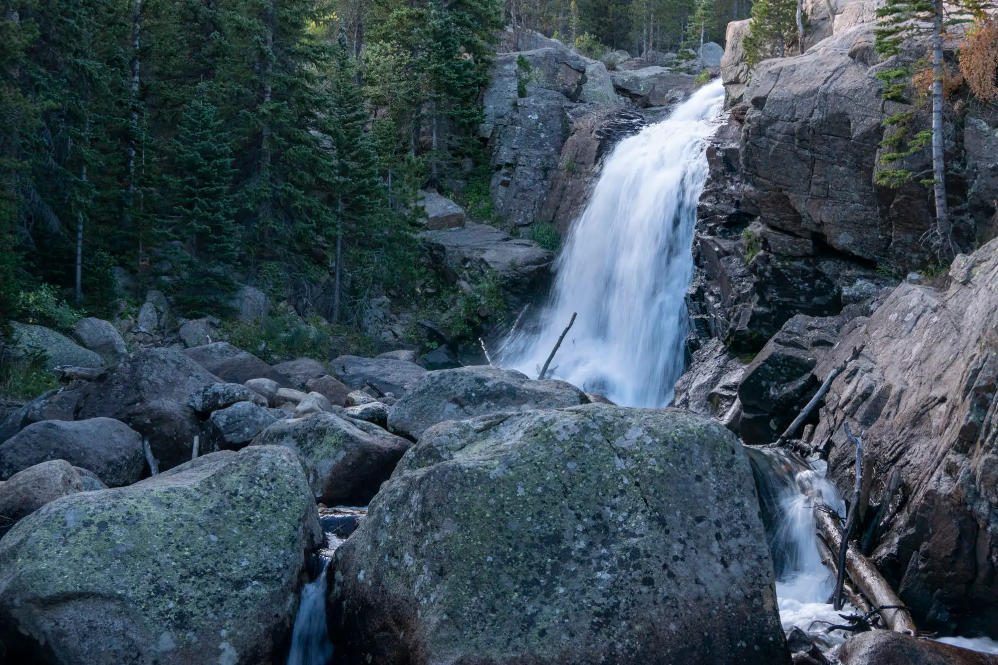 A short walk through the forests of aspen and evergreen takes you to a fantastic 25ft/8m waterfall. The trail follows up Tyndall Creek before crossing over it as it cascades below you. Take a left at the junction (right heads to Bear Lake).