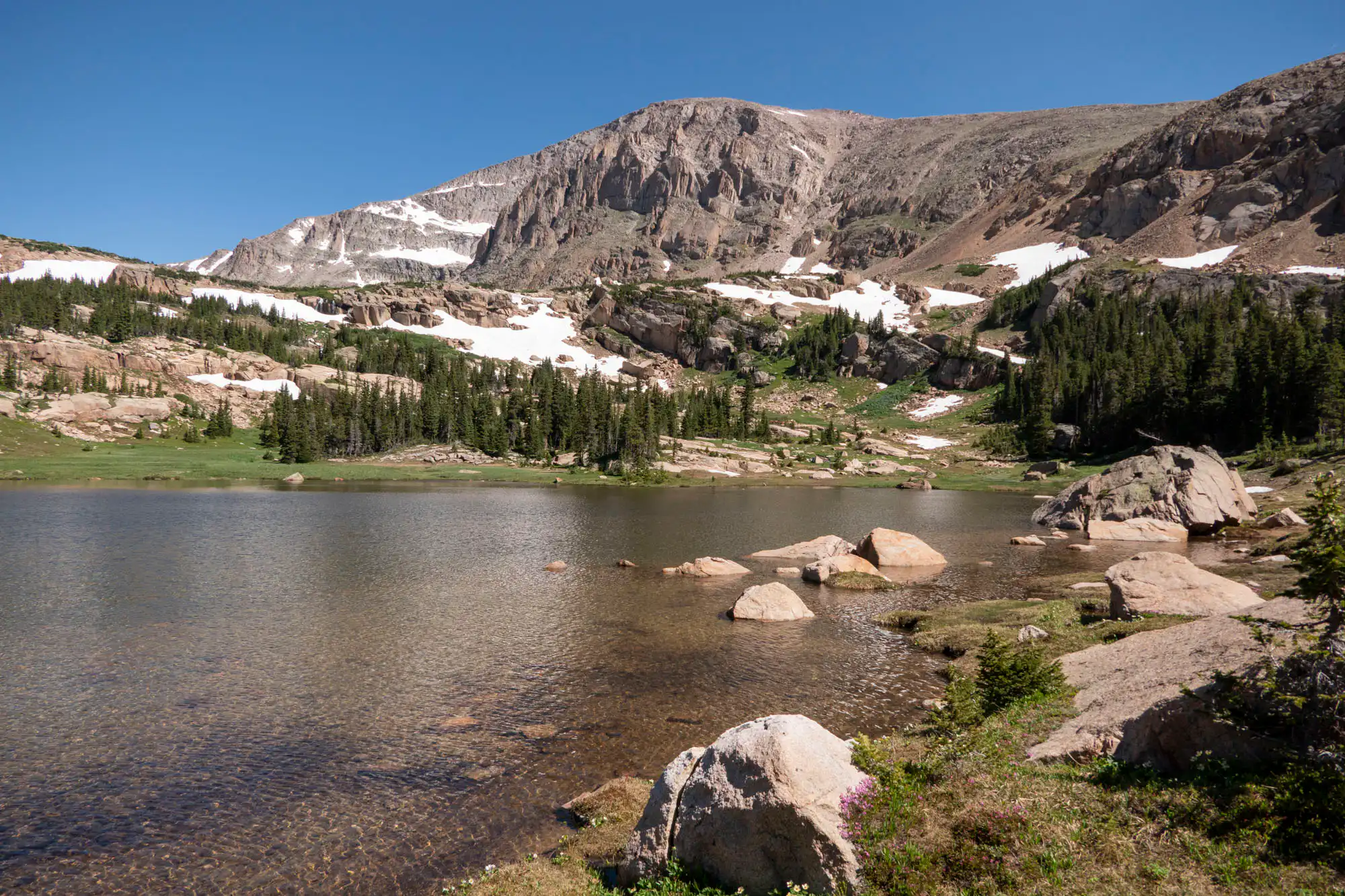 Chiefs Head Peak overlooks this lesser-visited gem of a lake fed by a waterfall, and surrounded by flowering meadows dotted with large boulders.