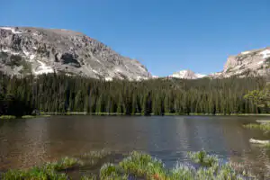The trail begins in the valley bottom of Wild Basin and works its way up, passing three named waterfalls (see Copeland Falls and Calypso Cascades, and Ouzel Falls for descriptions). Follow the signs towards Ouzel Lake as you climb out of the denser forest into a younger forest. Views expand all around as you rejoin the creek and follow it up to the lake.