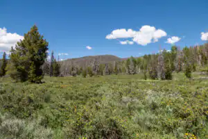 At the signed junction, leave the lake and head into the forest. A wayward creek may make the path submerged, so be prepared to remove your shoes or get them wet. This, however is the gateway to the open, Ranger Meadows. From here on out, you bounce between wide meadows of cinquefoil and sagebrush, or more marshy meadows. Take a right at the sign for Shadow Mtn Dam, to go up and over a gentle rise through the trees. Stay straight to close the loop.
