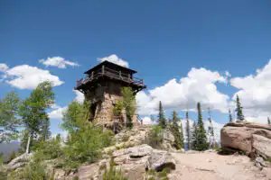 Enjoy expansive views of the Grand Lake area at this fortress of a fire lookout.