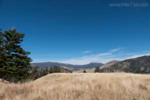 Once on the top of the plateau, take a left at the junction onto the Rescue Creek Trail, through a beautiful grassy meadow. At the top of a small ridge, the Rescue Creek drainage becomes visible. You drop into this valley, cross the creek, and work your way past the marshy edges. The trail then travels up the hillside. It veers away from the creek and up on another large grassy knoll with great views to the north. After a short traverse, the trail drops down into the cool shade from trees of an older, open forest.