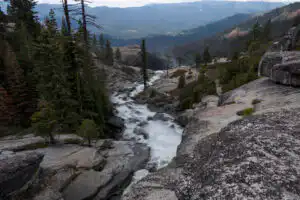 The trail steeply switchbacks up along the white water, joining up with the trail from the horse access and the grade mellows. The trail travels through an ever-changing variety of forest types and open areas. Chilnualna Creek makes appearances in a variety of beautiful cascades along the way.