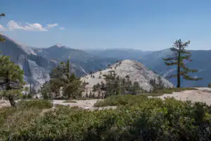 Follow the signs for North Dome through a few junctions where the trail begins climbing up onto Indian Ridge. The trail gets steep right before you reach the top of the ridge where you encounter the junction with the Indian Rock Trail. Stay right to work your way out to North Dome.