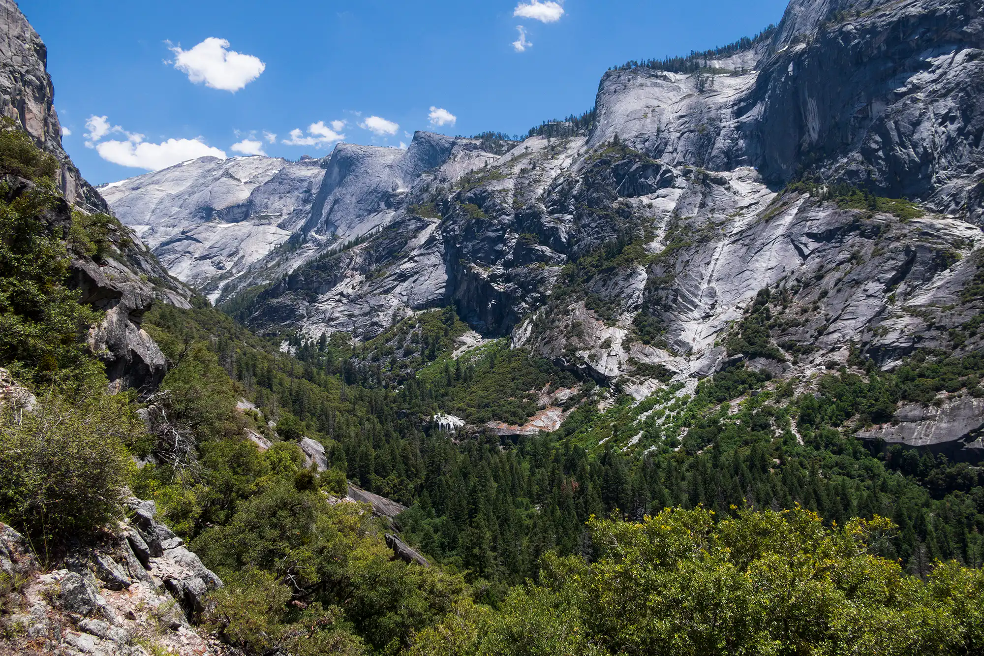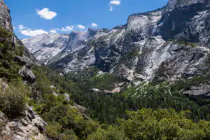 The steep Snow Creek Trail features expansive views as it takes you from the bottom of Tenaya Canyon into the wonderful forests high above the valley floor.