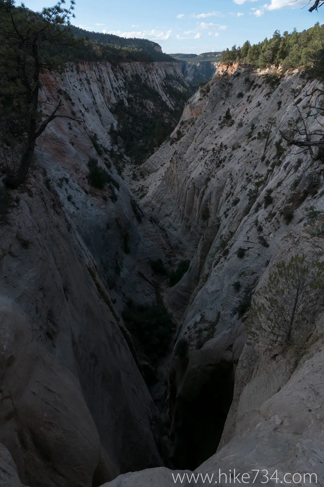 Trailhead: From Springdale, take Highway 9 east through the Zion-Mount Carmel Highway Tunnel. Make a left at the turnoff on the north side of the road just before the East Entrance. The trail starts at the gate at the end of the parking lot.