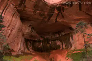 The crown jewel of this hike is the double arch alcove that features two alcoves stacked on top of one another. The upper arch is broad and high above you. The lower arch forms an alcove that is cool in both senses of the word. Please obey the signage and avoid climbing around in the alcove to protect it for the enjoyment of others.