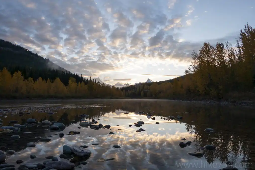 With no specific plan, we headed east on Highway 2. As the sun rose, it took our breath away. The clouds, the mountains, the river, and the fall colors were too much and pulled over, stumbled over rocks to the river and took it all in. We shivered for a second and hopped back in the car.