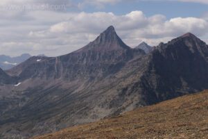 While bracing against the wind, we took a few pictures and planned our attack of Red Crow Mountain. We opted to sneak around the north side of the shoulder to stay out of the wind which proved to be wise and rewarding. A main Bighorn Sheep trail takes off on the west side of the pass which we followed, then took off on a more subtle sheep path up a chute.