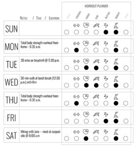 How can you prevent them? Or, how will you solve these issues when they arise? The more detailed and “bulletproof” your plan is, the better you’ll be at staying consistent with your workouts. Always make a “plan B” and “plan C” (no excuses, right?!).