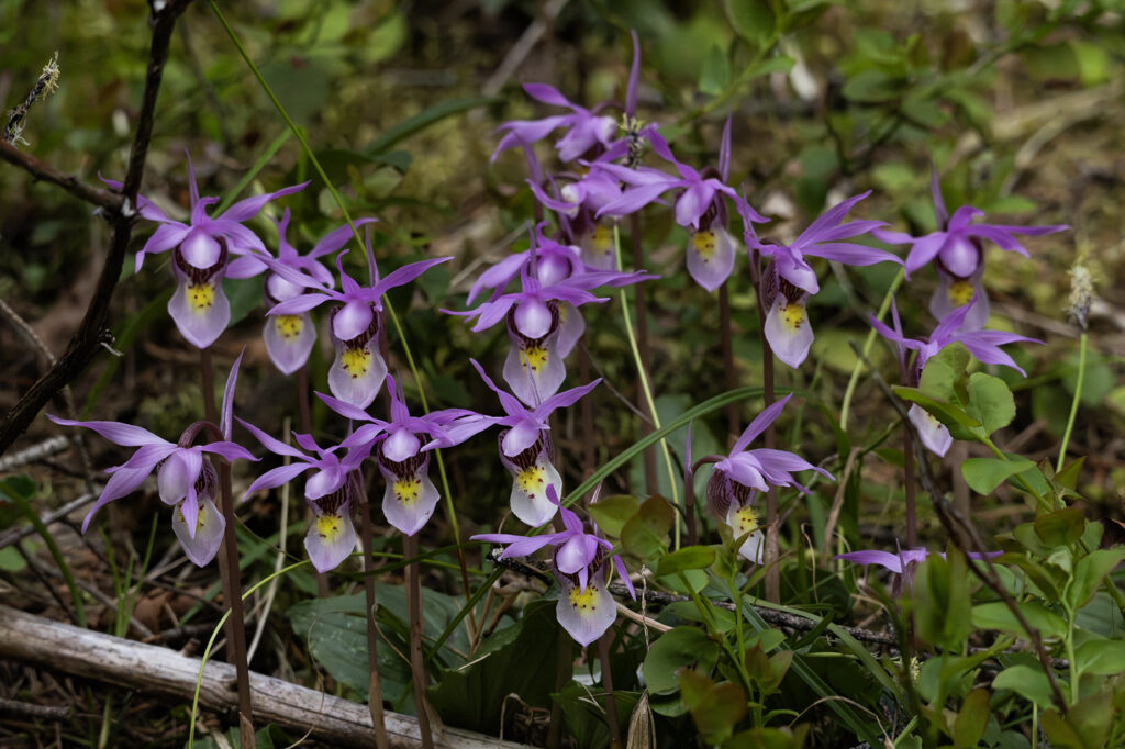 As we hiked, the warblers, tanagers, and other birds chirped. We spotted a Calypso Orchid and got all excited… then another one and another one! Throughout the day, we kept seeing more of these lovely orchids, also known as Fairy Slippers, in groups of one, two, five, and even 18! By the end of the day, we estimated that we saw at least 200.