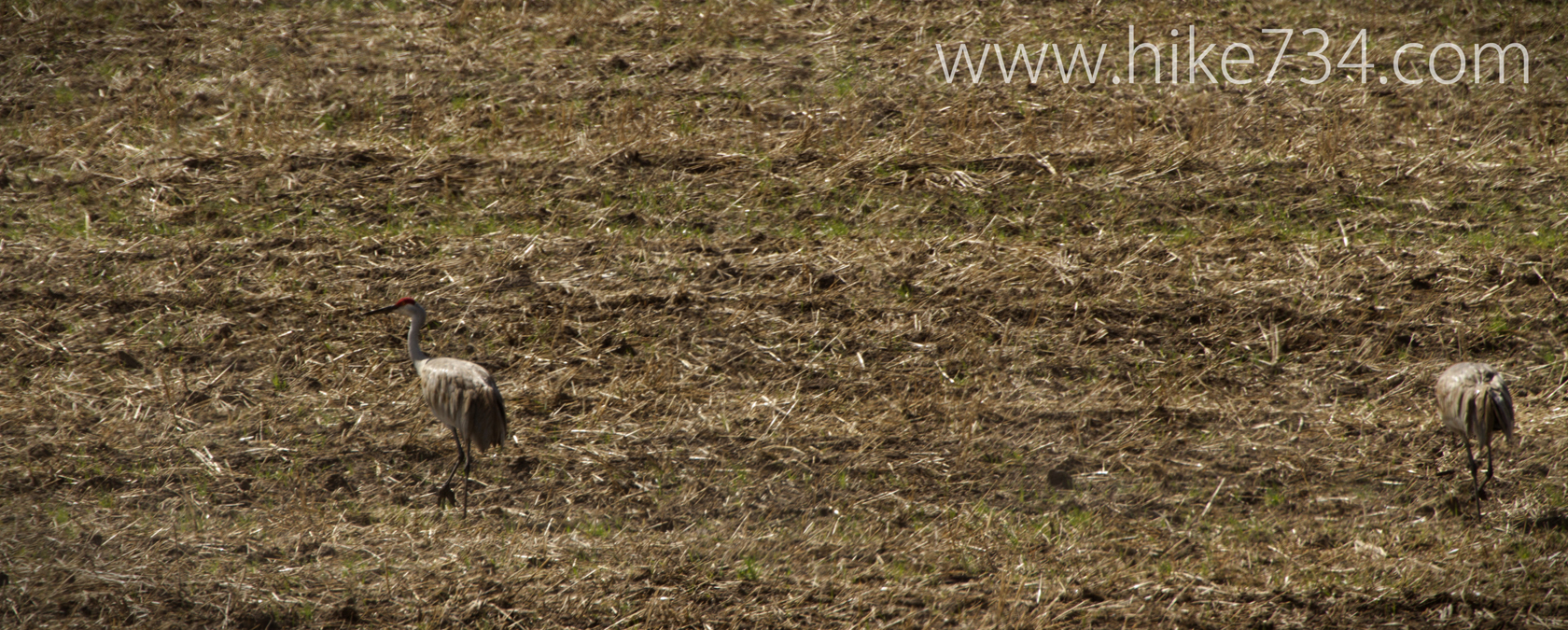 In the neighboring Flathead Valley where I live, Spring is here which means that one minute, it thinks it’s summer and the other, winter is back. On the way to work this morning, I went through a heavy rain storm, then into the warm sunshine where I came across two Sandhill Cranes gleaning in a nearby field.