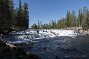 In the early 90’s I distinctly remember hiking in with Greg, my guide from ThreeRivers Ranch, methodically crossing the river using a three-legged approach, pulling out some nice trout using a w.buggar and a nymph from below the falls.Had to share the river with a couple of grizzlies who ignored us and went their way after having a leisurely shower and snack in the falls. I said a prayer of thanx that they preferred fish to those two ham sandwiches in my vest. Guide had bravely packed in the drinks and chips.
