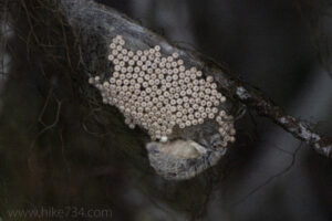 After about 2,500 ft in almost 2 miles, we finally made the ridge. Along the way, we passed numerous squirrels, chipmunks, huckleberries, and a wingless female moth laying eggs.