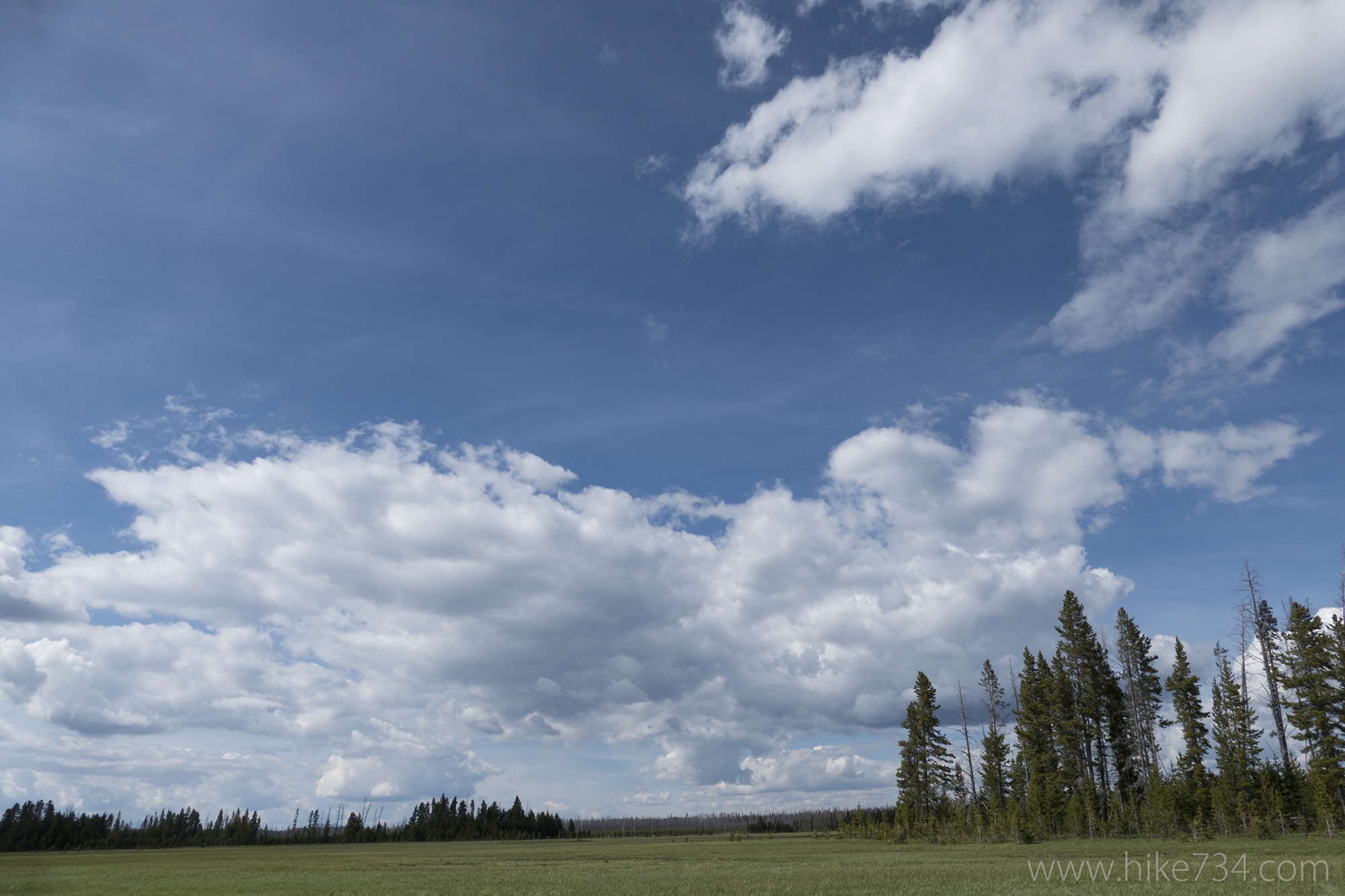 Cygnet Lakes in Yellowstone National Park is a lake at the end of a large meadow reached by four miles of level hiking through lodgepole stands. Due to the marshy edges of the lakes, you can’t get very close and many visitors may find the day better spent going to other lakes.