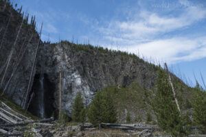 The foot-traffic only trail to the waterfall breaks off into a dense forest of lodgepole pines creating a hall along the path. This hall eventually breaks open as you get closer to the waterfall. Fairy Falls itself is a wonderful, tall waterfall that falls freely down until it splashes towards the middle creating an interesting and beautiful display.