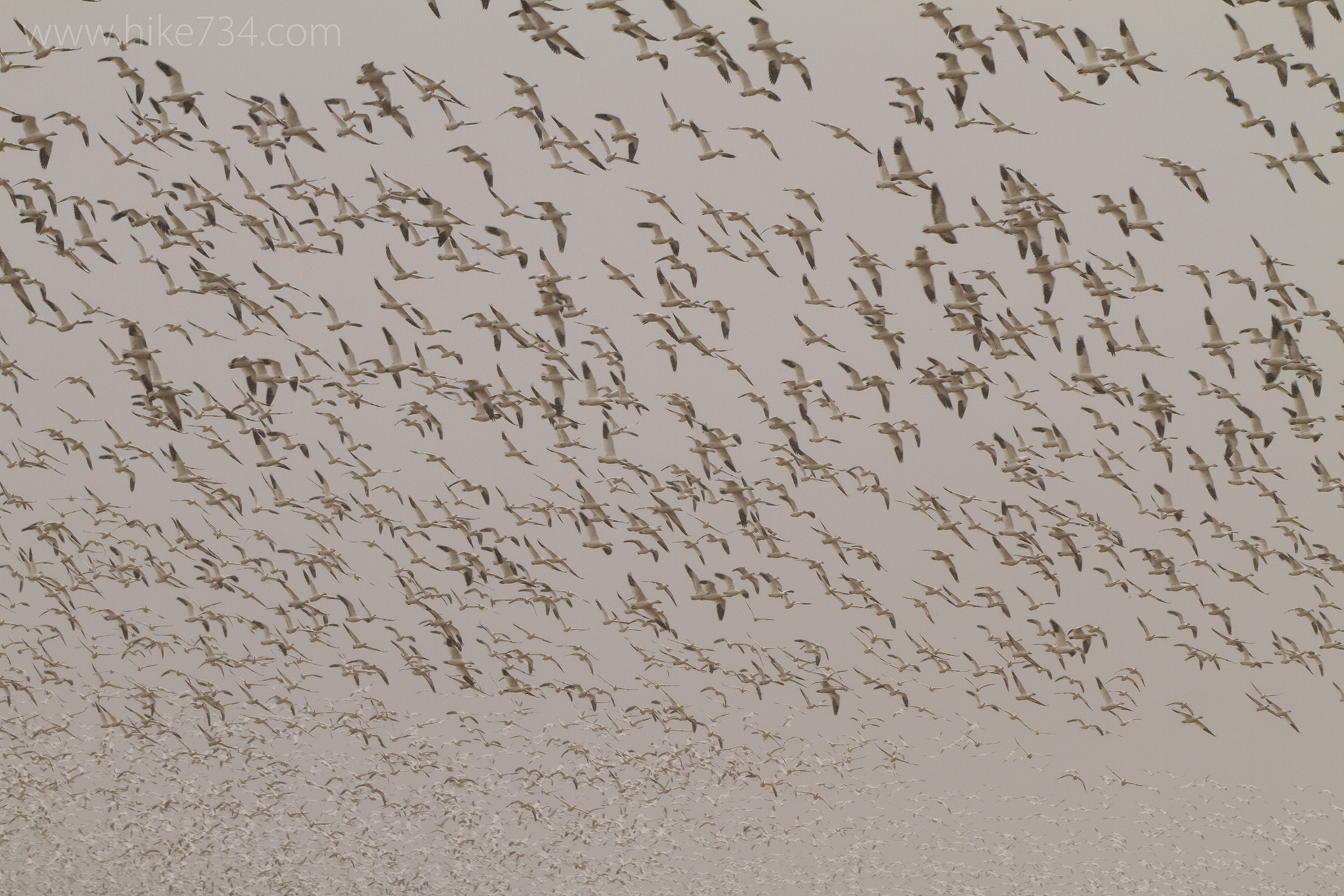 Freezout Lake near Fairfield, Montana serves as a stopover location for approximately 300,000 Snow Geese every March towards the end of the month. Whether or not your a birder, this spectacle is incredible. The birds spend the nights on the ponds and the days refueling by gleaning barley from the nearby fields. From there, they either return to the water to rest or continue north.