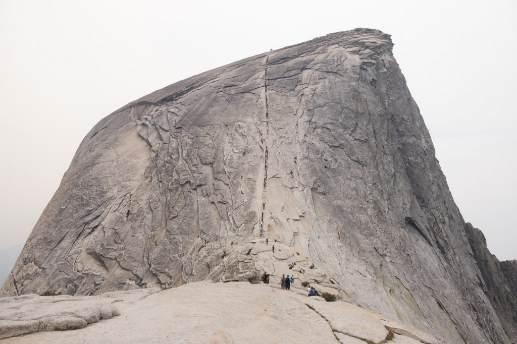 The trail levels out once again as it easily strolls through slab granite with large trees scattered about. I approached the sign that notified me that only hikers with a climbing permit can proceed. This stretch was another series of tight, stepped switchbacks carved into the stone. By this time, you’ll definitely feel it (as I sure did) after the amount of climbing combined with a bit of elevation. With each step up onto Sub dome, Half Dome rises in front of you.
