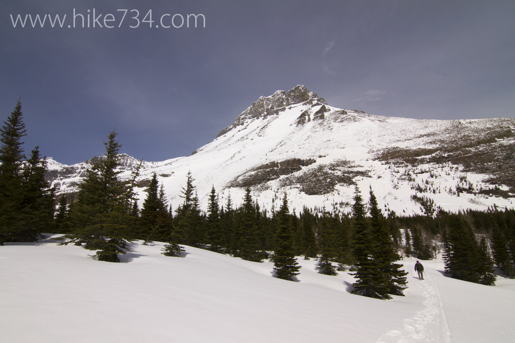 As soon as roads start opening up in Glacier National Park, it’s fun to head on out and see what’s going on. In places like Many Glacier, you’ll find no crowds and animals that are looking for food as the long winter releases its icy grip. You’ll also find more snow than you probably were expecting. Thankfully we had snowshoes and a perfectly sunny day. Couple that with sitings of Bighorn Sheep, a Mountain Goat, a Moose and some birds and we went home with smiles and sunburns.