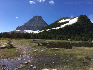 After watching some Bighorn Sheep on a snowfield below and refueling, we worked our way back down, traversed Dragon’s Tail, then Mt. Reynolds, and then joined the throngs of people along the Hidden Lake Trail, sliding their way back to their cars and us to ours.