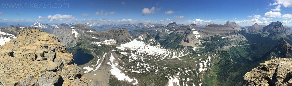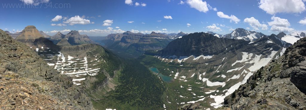 This vantage gives you sweet views looking down into the Twin Lakes basin. You can also see Sperry Glacier fairly well. Of course, there are summits all around and it’s just really great to be up in the mountaintops.