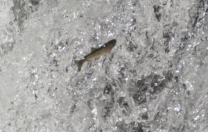 You can soak in the part of the stream right below the waterfall, but signs forbade the scrambling up to anything above the waterfall. I didn’t have time for a soak, so I took my pictures and video, then just stared at the waterfall. As I did, I noticed a bit of movement in the waterfall and realized that tiny fish about 2-4 inches were trying to swim up the waterfall. I found myself cheering for the little guys. I took some pictures of them and their struggle, then turned around to head to the main attraction.