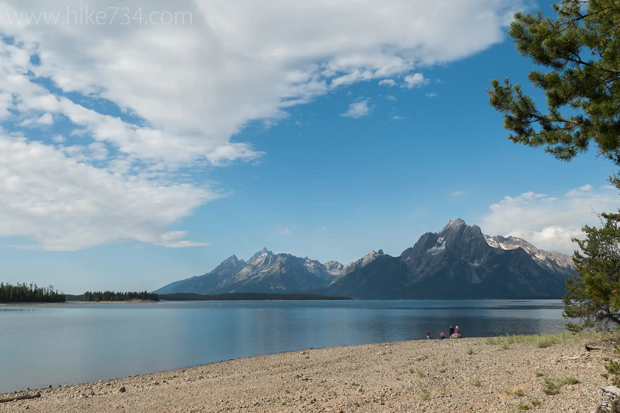 The Lakeshore Trail in Grand Teton National Park forms a figure-eight shape as it works its way out onto a peninsula that forms Colter Bay’s north shore. This hike gives some wonderful views of Jackson Lake and the Tetons, but spends a large portion of its time in the peninsula’s woods. The waters were perfectly calm…