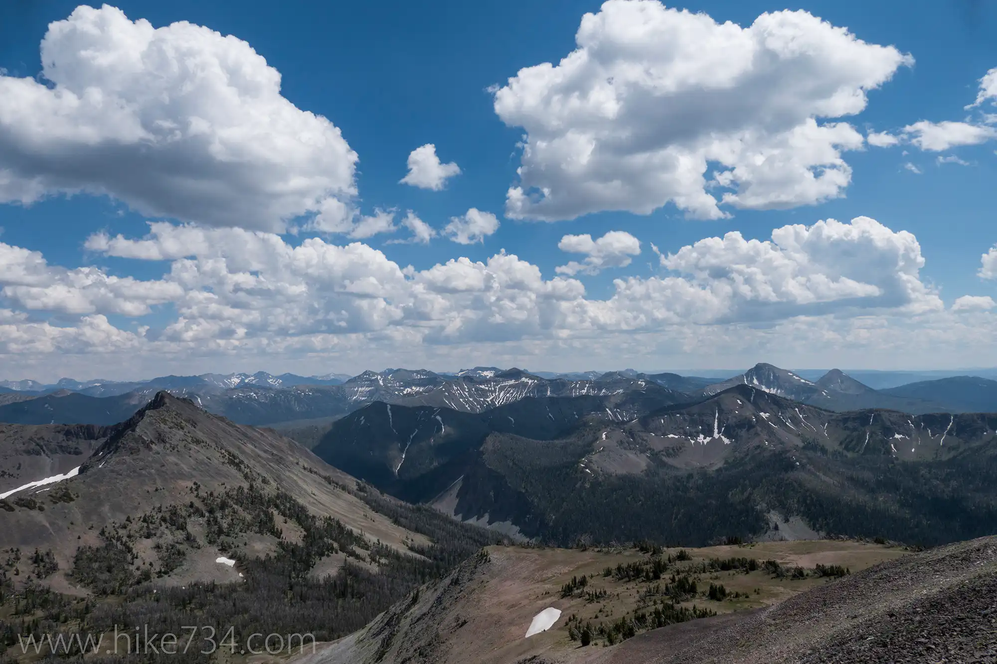 Eventually, you crest the summit ridgeline where a couple knobs vie for the title of actual summit. The 360 degree views make every step worth the effort. Beautiful drainages, rocky summits, green ridges, small pocket lakes tucked in valleys, and the incredible Yellowstone Lake all compete for your attention.