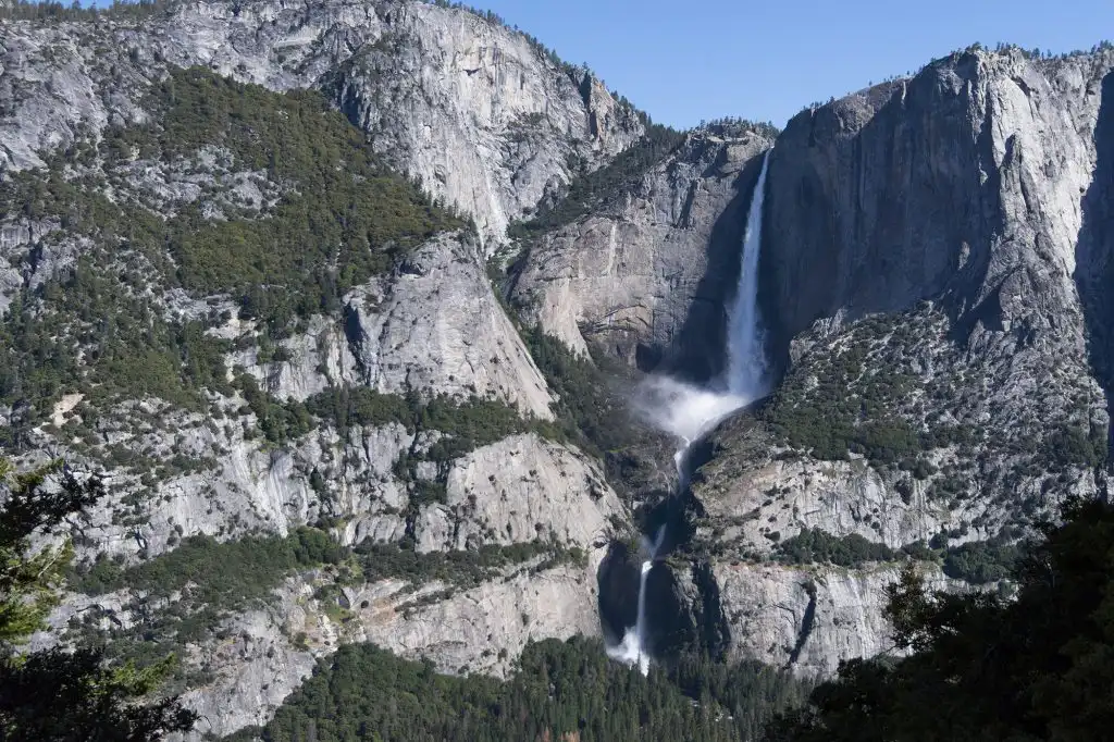 A few mule deer grazed on the grasses as I approached the steep hillside I was about to ascend, passing oaks along the level floor. An unusually high snowpack the previous winter (2016/2017) made for fantastic waterfalls. My first one of the day was the tall, slender Sentinel Fall with tall stretches broken by ledges all the way down. The switchbacks arrived soon thereafter and I was on my way.